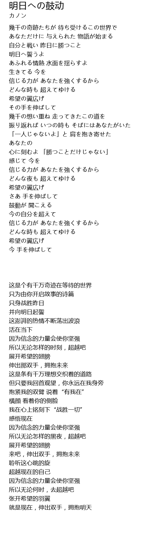 明日への鼓動 歌詞 カノン ふりがな付 歌詞検索サイト Utaten